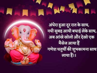 10. अंधेरा हुआ दूर रात के साथ, नयी सुबह आयी बधाई लेके साथ, अब आंखे खोलो और देखो एक मैसेज आया हैं गणेश चतुर्थी की शुभकामना साथ लाया हैं।।
