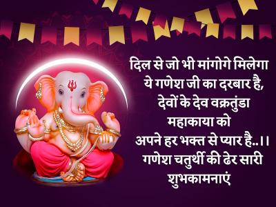 1. दिल से जो भी मांगोगे मिलेगा ये गणेश जी का दरबार है, देवों के देव वक्रतुंडा महाकाया को अपने हर भक्त से प्यार है..।। गणेश चतुर्थी की ढेर सारी शुभकामनाएं