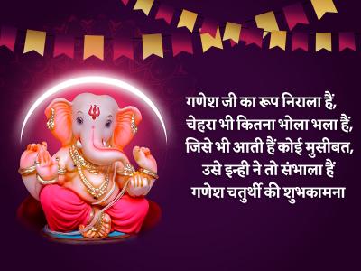 4. गणेश जी का रूप निराला हैं, चेहरा भी कितना भोला भला हैं, जिसे भी आती हैं कोई मुसीबत, उसे इन्ही ने तो संभाला हैं गणेश चतुर्थी की शुभकामना