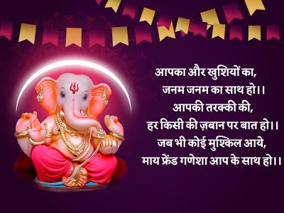7. आपका और खुशियों का, जनम जनम का साथ हो।। आपकी तरक्की की, हर किसी की ज़बान पर बात हो।। जब भी कोई मुश्किल आये, माय फ्रेंड गणेशा आप के साथ हो।।