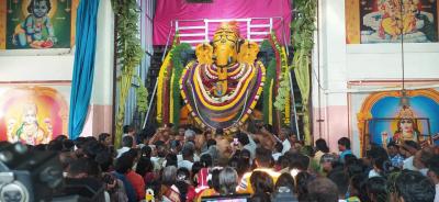 गणेश चतुर्थी पर गुवाहाटी के गणेश मंदिर में भक्तों ने की पूजा-अर्चना। (फोटो: Twitter/ANI)