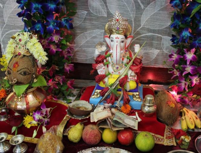 गणेश पूजा में गणपति महाराज की पूजा में मोदक, दूर्वा, घी, लाल पुष्प, पंचामृत, वस्त्र, जनेऊ, चंदन, अक्षत धूप, दीप, शमी पत्र, सिंदूर, फल, आदि चीजों की आवश्यकता होती है।