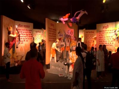 Ganesh Pandal in Gujarat: पंडाल में रामायण के कई दृश्यों को बेहद खूबसूरती से दिखाया गया, राम सेतु को बनाते हुए वानरों को दिखाया गया।
