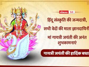 1 / 6इस साल गायत्री जयंती 11 जून को मनाई जा रही है।2 / 6हिंदू पंचांग के अनुसार, हर साल ज्येष्ठ मास के शुक्ल पक्ष की एकादशी को गायत्री जयंती मनाई जाती है. इसी दिन निर्जला एकादशी भी मनाई जाती है।3 / 6इस दिन मां गायत्री की विधि-विधान से पूजा करने के साथ-साथ इन मंत्रों का जाप करना चाहिए। 4 / 6गायत्री माता (Gayatri Mata) के पांच मुख और दस भुजाए हैं, उनके चार मुख चारों वेदों के प्रतीक माने जाते हैं और उनका पांचवां मुख सर्वशक्तिमान शक्ति का प्रतिनिधित्व करता है5 / 6गायत्री मंत्र को सुबह ही नहीं बल्कि दोपहर और शाम के समय भी किया जा सकता है।6 / 6हिंदू धर्म में गायत्री देवी के मंत्र को महामंत्र कहा गया है, जिसके जप मात्र से हर परेशानी दूर हो सकती है।
