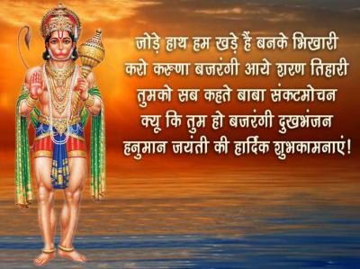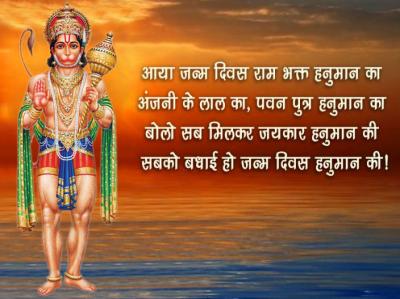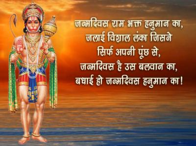 जन्मदिवस राम भक्त हनुमान का, जलाई विशाल लंका जिसने सिर्फ अपनी पूंछ से, जन्मदिवस है उस बलवान का, बधाई हो जन्मदिवस हनुमान का!