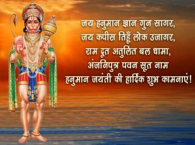 जय हनुमान ज्ञान गुन सागर, जय कपीस तिहूँ लोक उजागर, राम दूत अतुलित बल धामा, अंजनिपुत्र पवन सूत नाम हनुमान जयंती की हार्दिक शुभ कामनाएं!