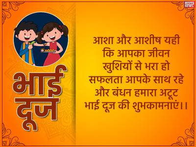 आशा और आशीष यही कि आपका जीवन खुशियों से भरा हो सफलता आपके साथ रहे और बंधन हमारा अटूट भाई दूज की शुभकामनाएं।।