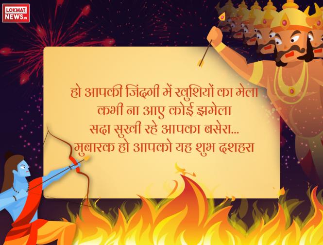 हो आपकी जिंदगी में खुशियों का मेला कभी ना आए कोई झमेला सदा सुखी रहे आपका बसेरा… मुबारक हो आपको यह शुभ दशहरा