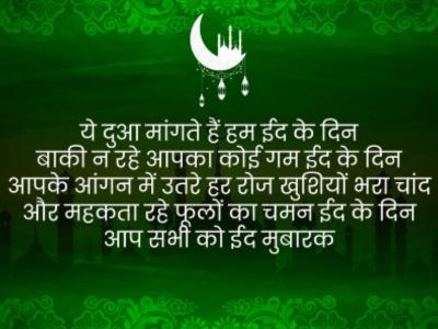 ये दुआ मांगते हैं हम ईद के दिन बाकी न रहे आपका कोई गम ईद के दिन आपके आंगन में उतरे हर रोज खुशियों भरा चांद और महकता रहे फूलों का चमन ईद के दिन आप सभी को ईद मुबारक