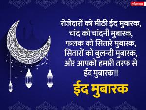 1 / 7रोजेदारों को मीठी ईद मुबारक, चांद को चांदनी मुबारक, फलक को सितारे मुबारक, सितारों को बुलन्दी मुबारक, और आपको हमारी तरफ से ईद मुबारक!!2 / 7दीपक में अगर नूर ना होता, तन्हा दिल यूं मजबूर ना होता, पास आकर गले न मिल पाएंगे, पर दूर से ही दिल तो मिलाएंगे। ईद मुबारक3 / 7रमजान में ना मिल सके; ईद में नज़रें ही मिला लूं; हाथ मिलाने से क्या होगा; सीधा गले से लगा लूं ईद मुबारक4 / 7कोई इतना चाहे हमें तो बताना, कोई तुम्हारी फिक्र करे तो बताना, ईद मुबारक तो हर कोई कह देगा, कोई हमारे अंदाज़ में कहे तो बताना5 / 7अल्लाह आपको ईद के मुक्कदस मौके पर तमाम, खुशियां अता फरमाएं और आपकी इबादत कुबूल करें!! ईद मुबारक!!6 / 7मुबारक नाम है तेरा, मुबारक ईद हो तुझको, जिसे तू देखना चाहे, उसी की दीद हो तुझको सभी को ईद मुबारक7 / 7हवा की खुशबू मुबारक, फिज़ा को मौसम मुबारक, दिलों को प्यार मुबारक, आपको हमारी तरफ से ईद मुबारक