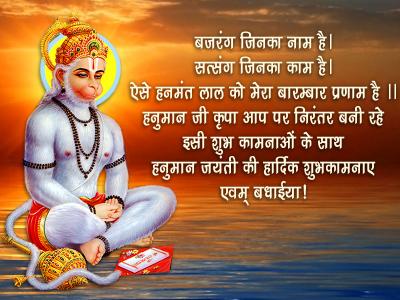 बजरंग जिनका नाम है। सत्संग जिनका काम है। ऐसे हनमंत लाल को मेरा बारम्बार प्रणाम है ।। हनुमान जी कृपा आप पर निरंतर बनी रहे इसी शुभ कामनाओं के साथ हनुमान जयंती की हार्दिक शुभकामनाए एवम् बधाईया!