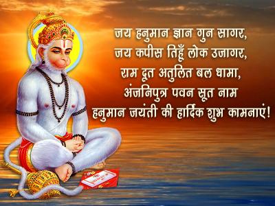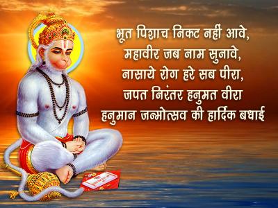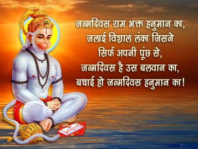 जन्मदिवस राम भक्त हनुमान का, जलाई विशाल लंका जिसने सिर्फ अपनी पूंछ से, जन्मदिवस है उस बलवान का, बधाई हो जन्मदिवस हनुमान का!