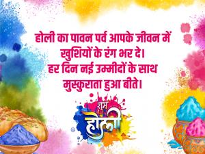 1 / 6होली का पावन पर्व आपके जीवन में खुशियों के रंग भर दे। हर दिन नई उम्मीदों के साथ मुस्कुराता हुआ बीते। आपको और आपके परिवार को होली की हार्दिक शुभकामनाएं।2 / 6रंगों का यह सुंदर त्योहार आपके जीवन में खुशहाली और समृद्धि लेकर आए। घर में प्रेम, आनंद और सफलता का माहौल बना रहे। होली की ढेर सारी शुभकामनाएं।3 / 6गुलाल की खुशबू, रंगों की बौछार और अपनों का प्यार… इन सबके साथ यह होली आपके जीवन को खुशियों से भर दे। आपको सपरिवार होली की हार्दिक बधाई।4 / 6ईश्वर करे इस होली आपके जीवन में सुख, शांति और समृद्धि के रंग हमेशा बने रहें। आपका जीवन खुशियों से महकता रहे। होली की बहुत-बहुत शुभकामनाएं।5 / 6रंगों की तरह आपका जीवन भी हमेशा चमकता रहे। हर सपना पूरा हो और हर खुशी आपके कदम चूमे। आपको और आपके अपनों को हैप्पी होली!6 / 6होली का हर रंग आपके जीवन में नई उमंग और नई रोशनी लेकर आए। आपके रिश्तों में मिठास और दिलों में प्यार बना रहे। रंगों भरी शुभकामनाएं!