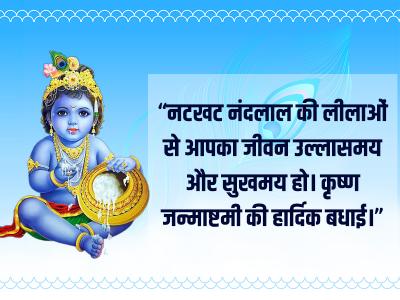 “नटखट नंदलाल की लीलाओं से आपका जीवन उल्लासमय और सुखमय हो। कृष्ण जन्माष्टमी की हार्दिक बधाई।”