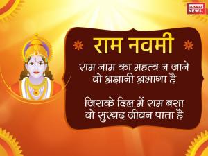 1 / 8राम नाम का महत्व न जाने वो अज्ञानी अभागा है जिसके दिल में राम बसा वो सुखद जीवन पाता है2 / 8राम नवमी पर जन्म हुआ इस मर्यादा पुरुषोत्तम राम का जिसने रावण के अहंकार को मिटाकर फैराया पताका सच्चाई का3 / 8अयोध्या के वासी राम रघुकुल के कहलाये राम पुरुषो में हैं उत्तम राम सदा जपों हरी राम का नाम4 / 8मन राम का मंदिर है यहाँ उसे विराजे रखना पाप का कोई भाग ना होगा बस राम को थामे रखना5 / 8राम नाम का फल है मीठा कोई चख के देख ले खुल जाते हैं भाग कोई पुकार के देख ले6 / 8आज प्रभु राम ने लिया अवतार, जैसे संत सौम्य है रामजी, वैसे ही आपका जीवन भी मंगलमय हो, राम नवमी मुबारक हो!7 / 8जिनके मन में श्री राम है, भाग्य में उसके वैकुण्ठ धाम है, उनके चरणो में जिसने जीवन वार दिया, संसार में उसका कल्याण है, राम नवमी की बधाई!8 / 8राम नाम का महत्व न जाने वो अज्ञानी अभागा हैं जिसके दिल में राम बसा वो सुखद जीवन पाता है राम नवमी की हार्दिक बधाई