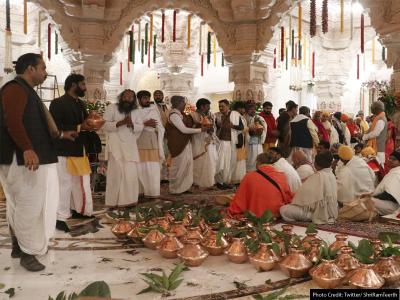 Ram Mandir Live: रामलला को 114 कलशों के पवित्र जल से कराया गया स्नान, पूजा अनुष्ठानों की नई तस्वीरें वायरल