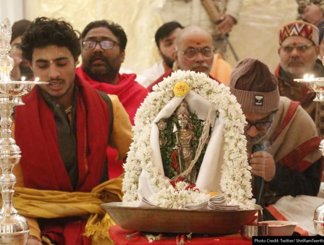 चेन्नई और पुणे सहित विभिन्न स्थानों से लाए गए विभिन्न फूलों का उपयोग करके पूजा की गई। अनुष्ठान में मंदिर ट्रस्ट के सदस्य अनिल मिश्रा और उनके परिवार और विश्व हिंदू परिषद के राष्ट्रीय अध्यक्ष डॉ राम नारायण सिंह ने भाग लिया। बता दें कि रामलला की यह मूर्ति सबसे पुरानी मूर्ति है जिसकी पूजा वर्षों से लोग कर रहे हैं।