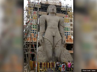 श्रवणबेलगोला में गोटमेश्वर बाहुबली की प्रतिमा का केसर से हुआ महामस्तकाभिषेक, देखें तस्वीरें