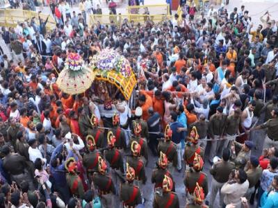 मंदिर प्रबंध समिति के सहायक प्रशासक एस के तिवारी के अनुसार सवारी परंपरागत शाही मार्ग से ये यात्रा निकाली गई।
