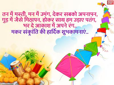 तन में मस्ती, मन में उमंग, देकर सबको अपनापन, गुड़ में जैसे मिठापन, होकर साथ हम उड़ाए पतंग, भर दे आकाश में अपने रंग.. Happy Makar Sankranti