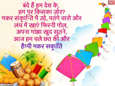 बंदे हैं हम देश के, हम पर किसका ज़ोर? मकर संक्रान्ति में उड़े, पतंगे चारो और लंच में खाएं फिरनी गोल, अपना मांझा खुद सूतने, आज हम चले छत की और, हैप्पी मकर सक्रांति