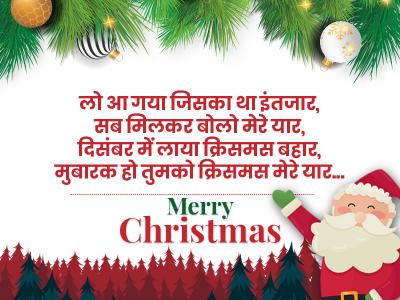 लो आ गया जिसका था इंतजार, सब मिलकर बोलो मेरे यार, दिसंबर में लाया क्रिसमस बहार, मुबारक हो तुमको क्रिसमस मेरे यार...