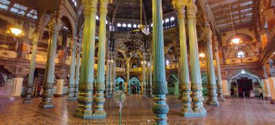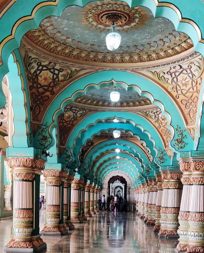 मैसूर पैलेस का ऐतिहासिक रत्न-जड़ित स्वर्ण सिंहास महल के मुख्य कक्ष से निकाल दशहरा उत्सव के लिए तैयार किया गया है।