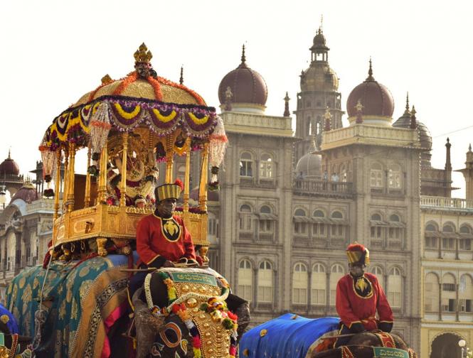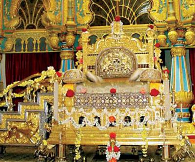 दशहरे के इन 10 दिनों के दौरान मैसूर शहर नई दुल्हन की तरह सज जाता है। दशहरा और नवरात्रि उत्सव के लिए, वजन 280 किलोग्राम और 800 साल से अधिक पुराना, रत्न जड़ित स्वर्ण सिंहासन इस बार भी स्ट्रॉन्ग रूम से बाहर निकाला गया और सोमवार को मैसूरु महल के दरबार हॉल में निजी दरबार के लिए असेंबल किया गया। सिंहासन को पूर्ववर्ती मैसूर शाही परिवार की सदस्य प्रमोदा देवी वाडियार की देखरेख में तैयार किया गया था।