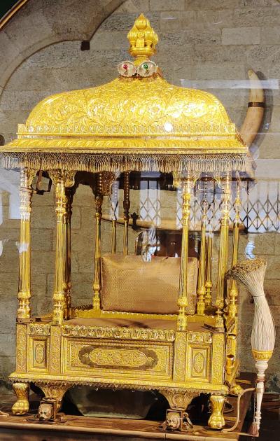दशहरा उत्सव समाप्त होते ही स्वर्ण सिंहासन फिर से खंडित कर 8 नवंबर को महल के मुख्य कक्ष में पुनः स्थापित कर दिया जाता है। बॉक्स आइटमः इसके अलावा, एक दिलचस्प तथ्य के रूप में, विजयदशमी के दिन जम्बू सवारी के दौरान बड़े सजाए गए हाथी मुख्य आकर्षण होते हैं इन हाथियों के सोने से जड़े आभूषणों में 3 फुट लंबा माथे का टुकड़ा, यानी, नेट्टीपट्टम, सिंगोटी शामिल है जो हाथियों के दांतों को ढकता है, गर्दन की घंटियाँ और रस्सियाँ, पायल, याक की पूंछ के बालों से बनी व्हिस्क, और रंगीन छतरियां। आभूषण केरल के कारीगरों द्वारा बनाए जाते हैं और जंबू सावरी के समय जनता के देखने के लिए प्रदर्शित किए जाते हैं।