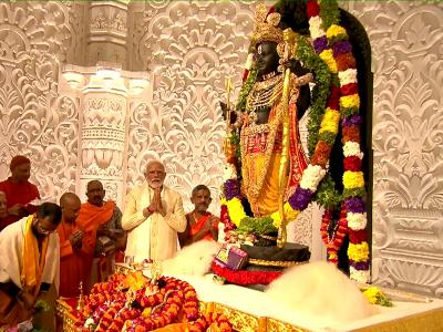 मालूम हो कि अयोध्या में रामलला के नवीन विग्रह की प्राण-प्रतिष्ठा के लिए प्रधानमंत्री नरेन्द्र मोदी सोमवार को दोपहर में मंदिर के गर्भगृह में पहुंचे और अनुष्ठान शुरू किए। नवनिर्मित राम मंदिर के मुख्य द्वार से अंदर तक मोदी पैदल चलकर कार्यक्रम स्थल पहुंचे और गर्भगृह में प्रवेश किया।