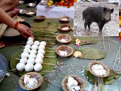 सूअर श्राद्ध के संपर्क में नहीं आना चाहिए इससे अन्न दूषित हो जाता है।