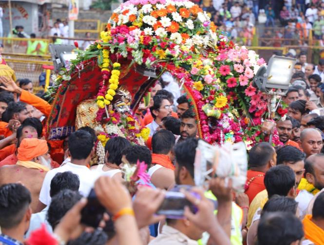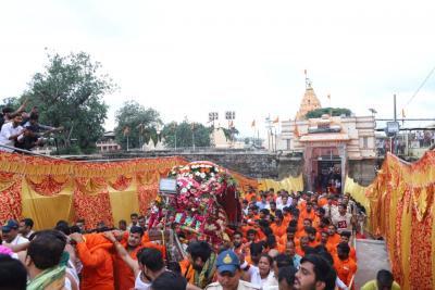 श्रावण मास के पहले सोमवार को भगवान श्री महाकालेश्वर की सवारी कोरोना काल के दो वर्ष बाद अपने परंपरागत मार्ग से निकाली गई।