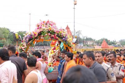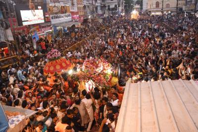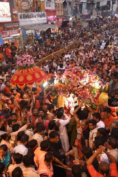 सवारी के निकलने के पूर्व सभामंडप में सर्व प्रथम भगवान श्री चन्द्रमौलेश्वर का षोडशोपचार से पूजन-अर्चन किया गया। इसके पश्चात भगवान की आरती की गई। सवारी निकलने के पूर्व मंदिर परिसर के सभामंडप में कलेक्टर एवं अध्यक्ष मंदिर प्रबंध समिति कुमार पुरुषोत्तम, श्री पंचायती महानिर्वाणी अखाड़े के महंत विनीत गिरी महाराज, के साथ जनप्रतिनिधि एवं प्रशासनिक पुलिस अधिकारियों ने भगवान के चंद्रमौलेश्वर स्वूरूप का पूजन -अर्चन किया और आरती में सम्मिलित हुए।
