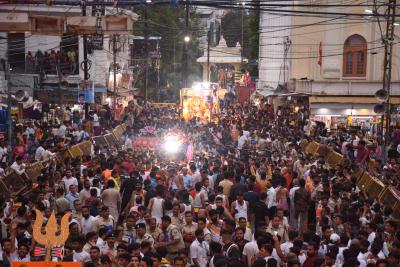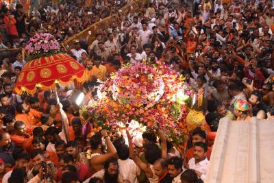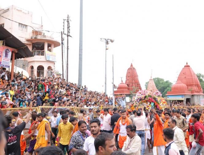 सवारी मार्ग में स्थान-स्थान पर खडे श्रद्धालुओं ने जय श्री महाकाल के घोष के साथ उज्जैन नगरी के राजा भगवान श्री महाकालेश्वर पर पुष्पवर्षा की।रामघाट पर सवारी के पहुंचने पर भगवान का शिप्रा जल से अभिषेक किया गया। सामने के दत्त अखाडा घाट से शैव संप्रदाय के प्राचीनतम श्री पंच दसनाम जूना अखाड़ा की ओर से आरती की गई।