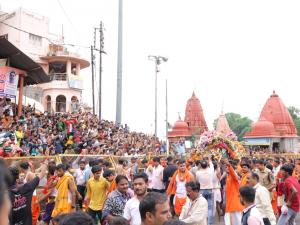 1 / 9श्रावण के पंचम सोमवार पर भगवान श्री महाकालेश्वर ने श्रद्धालुओं को पांच स्वरूपों में दर्शन नगर भ्रमण के दौरान दिए। भगवान पालकी में श्री चन्द्रमौलेश्वर, हाथी पर श्री मनमहेश, गरुड़ रथ पर शिवतांडव, नंदी रथ पर उमा-महेश, डोल रथ पर होल्कर स्टेट के मुखारविंद के स्वरूप में विराजित होकर अपनी प्रजा का हाल जानने निकलें।2 / 9सवारी के निकलने के पूर्व सभामंडप में सर्व प्रथम भगवान श्री चन्द्रमौलेश्वर का षोडशोपचार से पूजन-अर्चन किया गया। इसके पश्चात भगवान की आरती की गई। सवारी निकलने के पूर्व मंदिर परिसर के सभामंडप में कलेक्टर एवं अध्यक्ष मंदिर प्रबंध समिति कुमार पुरुषोत्तम, श्री पंचायती महानिर्वाणी अखाड़े के महंत विनीत गिरी महाराज, के साथ जनप्रतिनिधि एवं प्रशासनिक पुलिस अधिकारियों ने भगवान के चंद्रमौलेश्वर स्वूरूप का पूजन -अर्चन किया और आरती में सम्मिलित हुए। 3 / 9मंदिर के सभा मंडप में पूजन-अर्चन मुख्य पुजारी पं. घनश्याम शर्मा ने संपन्न् कराया। भगवान श्री चन्द्रमोलेश्वर रजत पालकी में सवार होकर अपनी प्रजा का हाल जानने और भक्तों को दर्शन देने के लिए नगर भ्रमण पर निकले। पालकी जैसे ही श्री महाकालेश्वर मंदिर के मुख्य् द्वार पर पहुंची सशस्त्र पुलिस बल के जवानों द्वारा पालकी में सवार श्री चन्द्रमोलेश्वर को सलामी (गार्ड ऑफ ऑनर) दी गई।4 / 9सवारी मार्ग में स्थान-स्थान पर खडे श्रद्धालुओं ने जय श्री महाकाल के घोष के साथ उज्जैन नगरी के राजा भगवान श्री महाकालेश्वर पर पुष्पवर्षा की।रामघाट पर सवारी के पहुंचने पर भगवान का शिप्रा जल से अभिषेक किया गया। सामने के दत्त अखाडा घाट से शैव संप्रदाय के प्राचीनतम श्री पंच दसनाम जूना अखाड़ा की ओर से आरती की गई।5 / 9यहां से सवारी श्री सिंधिया देव स्थान ट्रस्ट के श्री गौपाल मंदिर पहुंचने पर स्टेट की और से मंदिर के पुजारियों ने भगवान की आरती एवं पूजन किया । इसके बाद सवारी अपने परंपरागत मार्ग से होती हुई देर शाम मंदिर पहुंची।6 / 9श्री महाकालेश्वर मंदिर में श्रावण माह के पांचवें सोमवार को श्री महाकालेश्वर भगवान के पट प्रातः 02:30 बजे खुले। पट खुलने के पश्चात प्रातः 03 से प्रातः 06 बजे तक लगभग 63 हजार 3 सौ 71 श्रद्धालुओं ने भगवान के दर्शन किये। 7 / 9सोमवार को कार्तिकेय मण्डप को पूर्ण रूप से चलित भस्मार्ती में आने वाले भक्तों हेतु खाली रखा गया था, जिससे ज्यादा से ज्यादा लोग भस्मार्ती के दर्शन कर सके।8 / 9मंदिर प्रबन्ध समिति के प्रशासक संदीप सोनी ने बताया कि, श्री महाकालेश्वर मंदिर के सभी द्वार से श्रद्धालुओं, कावड़ यात्रियों, वृद्धजनों, दिव्यांगों आदि के सुलभ दर्शन की व्यवस्था की गई है।9 / 9श्रावण माह में भगवान महाकालेश्वर की भस्मारती हेतु मंदिर के पट 04 जुलाई से 11 सितम्बर 2023 तक प्र