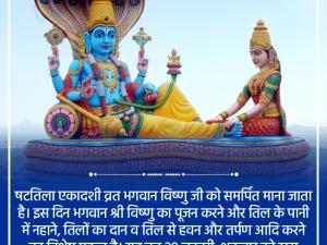1 / 6षटतिला एकादशी व्रत भगवान विष्णु जी को समर्पित माना जाता है। इस दिन भगवान श्री विष्णु का पूजन करने और तिल के पानी में नहाने, तिलों का दान व तिल से हवन और तर्पण आदि करने का विशेष महत्व है। यह व्रत 28 जनवरी, शुक्रवार को रखा जाएगा। आइये जानते हैं षटतिला एकादशी के मंत्रों बारे में....2 / 6ॐ नारायणाय नम:3 / 6ॐ विष्णवे नम: 4 / 6ॐ हूं विष्णवे नम:5 / 6ॐ नमो भगवते वासुदेवाय नम:6 / 6ॐ नारायणाय विद्महे। वासुदेवाय धीमहि। तन्नो विष्णु प्रचोदयात्