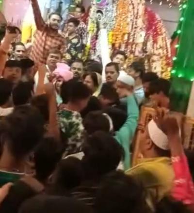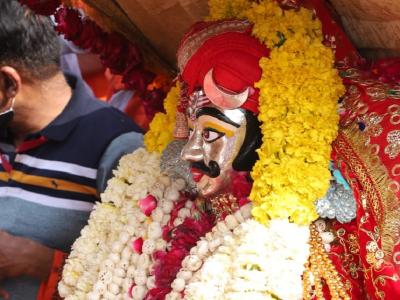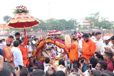 पालकी जैसे ही मुख्य द्वार पर पहुची होमगार्ड, पुलिस एवं एसएएफ के जवानों द्वारा भगवान को सलामी दी गई।