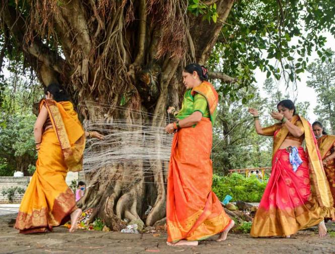 वट सावित्री व्रत में सुहागिन महिलाएं अपने पति की लंबी उम्र के लिए बरगद के पेड़ के नीचे पूजा करती हैं।