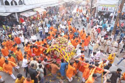 इस दौरान भगवान का नए शहर में पुष्पवर्षा के साथ जोरदार स्वागत किया गया। सवारी के दशहरा मैदान पहुंचने पर कलेक्टर एवं मंदिर प्रबंध समिति के अध्यक्ष कुमार पुरुषोत्तम ने भगवान महाकाल व शमी वृक्ष की पूजा अर्चना की। पूजन पश्चात सवारी फ्रीगंज ओवरब्रिज से संख्याराजे धर्मशाला, देवासगेट, मालीपुरा, दौलतगंज, तोपखाना होते हुए पुनः श्री महाकालेश्वर मंदिर पहुंची।