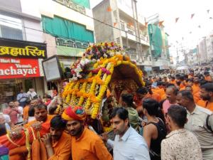 1 / 6पौराणिक मान्यता व राजवंश परंपरा में विजय दशमी पर सर्वत्र विजय की कामना से नगर सीमान्लंघन स्थित शमी वृक्ष का पूजन किया जाता है। इसी के तहत सोमवार को विजयादशमी पर उज्जैन के राजा भगवान श्री महाकाल की सवारी दशहरा मैदान पहुंची । यहां पर शमी वृक्ष का पूजन किया गया।इससे पूर्व सुबह के समय परंपरानुसार मंदिर पर नया ध्वज चढ़ाया गया।2 / 6वर्ष में एक बार विजयादशमी पर भगवान नए शहर फ्रीगंज स्थित दशहरा मैदान जाते हैं। सवारी को सीमान्लंघन सवारी कहा जाता है। महाकाल मंदिर में यह परंपरा इस बार सोमवार को मनाई गई। मंदिर समिति की जनसंपर्क अधिकारी गौरी जोशी ने बताया कि ग्वालियर पंचांग के अनुसार विजय दशमी सोमवार को महाकालेश्वर मंदिर से शाम 4 बजे भगवान महाकाल की सवारी निकली।3 / 6मंदिर के मुख्य द्वार पर सशस्त्र बल की टुकड़ी ने अवंतिकानाथ को सलामी दी। सवारी कोटमोहल्ला, गुदरी चौराहा,पटनी बाजार, गोपाल मंदिर, सराफा, सतीगेट, नई सड़क, दौलतगंज, मालीपुरा, देवासगेट, चामुण्डा माता चौराहा से टॉवर के रास्ते पुराने कलेक्टर बंगले के सामने से होती हुई दशहरा मैदान पहुंची।4 / 6इस दौरान भगवान का नए शहर में पुष्पवर्षा के साथ जोरदार स्वागत किया गया। सवारी के दशहरा मैदान पहुंचने पर कलेक्टर एवं मंदिर प्रबंध समिति के अध्यक्ष कुमार पुरुषोत्तम ने भगवान महाकाल व शमी वृक्ष की पूजा अर्चना की। पूजन पश्चात सवारी फ्रीगंज ओवरब्रिज से संख्याराजे धर्मशाला, देवासगेट, मालीपुरा, दौलतगंज, तोपखाना होते हुए पुनः श्री महाकालेश्वर मंदिर पहुंची।5 / 6महाकाल मंदिर में विजय दशमी पर संध्या आरती में भगवान महाकाल ने भक्तों को होलकर मुखारविंद में दर्शन दिए। संध्या पूजन के बाद भगवान का होलकर रूप में शृंगार किया गया।6 / 6विजय दशमी पर महाकालेश्वर मंदिर के शिखर पर नया ध्वज चढ़ाने की परंपरा का भी विजयादशमी पर निर्वहन किया गया। सुबह आरती के बाद शिखर पर नया ध्वज चढ़ाया गया। महानिर्वाणी अखाड़े के महंत विनितगिरिजी महाराज ने ध्वज का पूजन किया।
