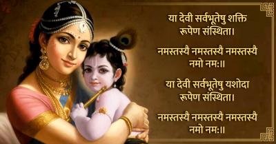 या देवी सर्वभूतेषु शक्ति रूपेण संस्थिता। नमस्तस्यै नमस्तस्यै नमस्तस्यै नमो नम:॥ या देवी सर्वभूतेषु यशोदा रूपेण संस्थिता। नमस्तस्यै नमस्तस्यै नमस्तस्यै नमो नम:॥