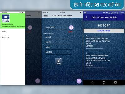 मैसेज के अलावा आप ऐप डाउनलोड कर भी स्मार्टफोन के बारे में जानकारी पा सकते हैं। इसके लिए सबसे पहले गूगल प्ले स्टोर से 'Know Your Mobile' नाम का ऐप डाउनलोड करना होगा। ऐप को इंस्टॉल करने के बाद फोन IMEI नंबर एंटर करें और 'verify' पर क्लिक करें। क्लिक करते ही आपको फोन के बारे में सारी जानकारी मिल जाएगी। इसकी मदद से आप ब्लैकलिस्टेड नंबर के बारे में भी जानकारी ले सकते हैं।