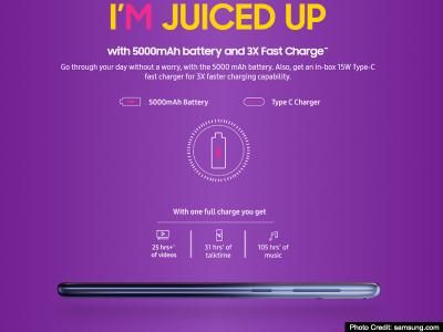 Galaxy M सीरीज़ का लेटेस्ट स्मार्टफोन 5,000 एमएएच की बैटरी के साथ आता है। यह 15 वॉट की फास्ट चार्जिंग को भी सपोर्ट करता है। Samsung का दावा है कि गैलेक्सी एम30 की बैटरी आसानी से एक दिन तक साथ देगी।