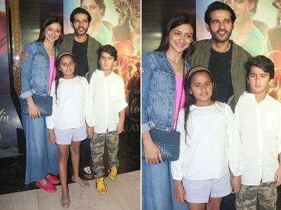 हितेन तेजवानी और गौरी प्रधान अपने बच्चों के साथ फिल्म देखने पहुंचे