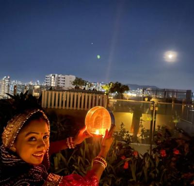 Anupamaa का रोल निभा रही एक्ट्रेस रूपाली गांगुली काफी चर्चा में हैं, करवाचौथ के मौके पर एक्ट्रेस ने चांद को देखेते हुए फोटो शेयर की है। (फोटो: इंस्टाग्राम)