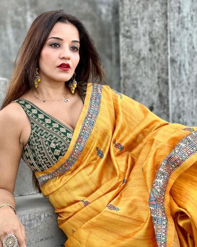 येलो साड़ी में मोनालिसा का दिखा सिजलिंग अवतार, डीपनेक ब्लाउज पर टिकी नजरें