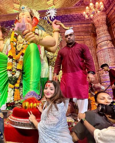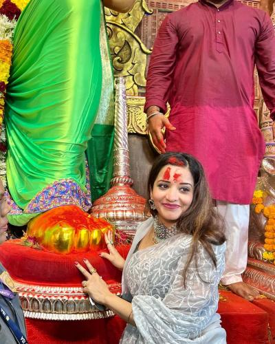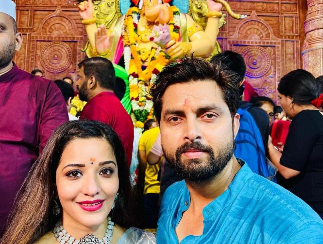 गणपति के दर्शन करने लालबाग पहुंचीं मोनालिसा, पति संग लिया बप्पा का आशीर्वाद
