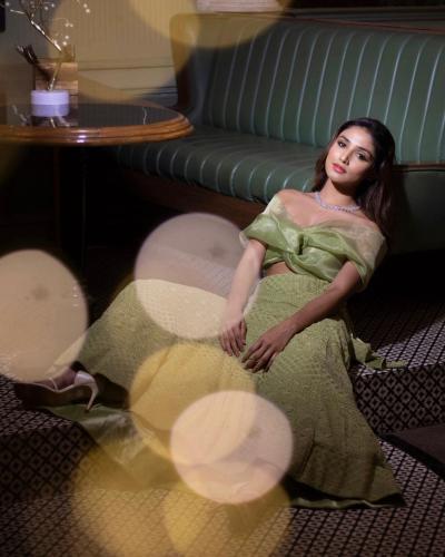 डोनल बिष्ट ने सफेद रंग की ऑफ शोल्डर ट्रांसपेरेंट गाउन पहने हुई हैं, जिसमें वो काफी बोल्ड और ग्लैमरस लग रहा है। (फोटो: इंस्टाग्राम)