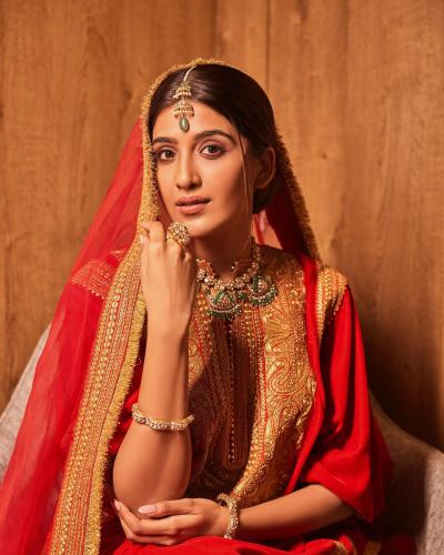 इन तस्वीरों में निमृत लाल रंग के लहंगे में दुल्हन की तरह सजी हुई बहुत खूबसूरत लग रही हैं। (फोटो: इंस्टाग्राम)