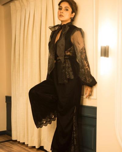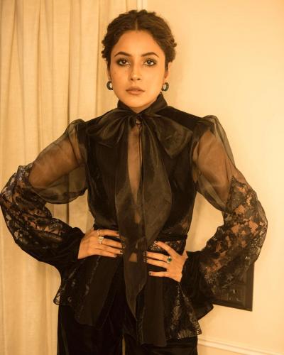 इन तस्वीरों में शहनाज ब्लैक कलर का ट्रांसपेरेंट आउटफिट पहना हुआ हैं। (फोटो: इंस्टाग्राम)